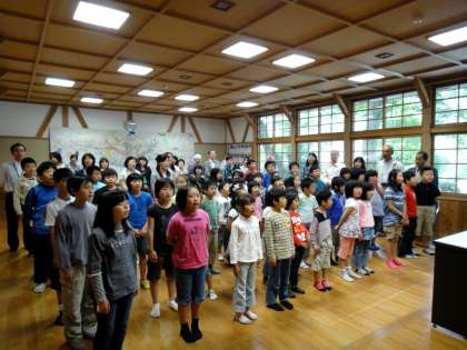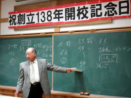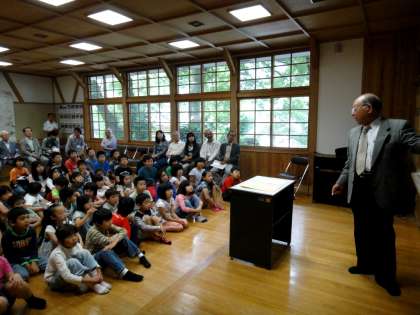 10日(金)は恩二小の138回目の「開校記念日」でした。朝、開校記念集会を行いましたが、これには恩二小の卒業生でもあるブルーベリー農家の中村貞夫さんに来ていただき、お話をしていただきました。