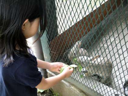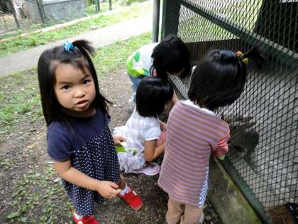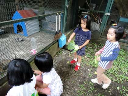 来年度入学予定の新1年生4名も見学に来ました。校庭を走り回ったり、ウサギやヤギにエサをあげていました。