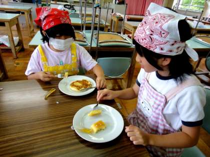 この前のクラブ活動で、料理クラブの子ども達が「ホットケーキ」を作っていました。