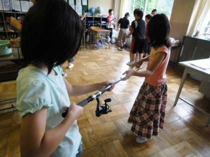 15日(水)、5年生が16日から出かける三浦移動教室での、船釣りの練習をしました。