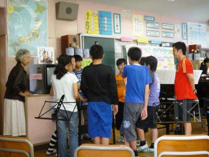 グループに分かれて、歌の練習をしていました。歌は「COSMOS」です。