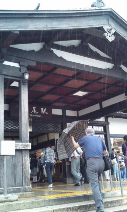 高尾駅は雨が降っていますが、定刻に全員集合しました。