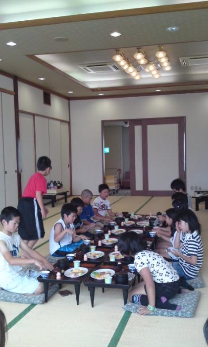 7時から朝食が始まりました。45畳の大広間で食べ始めました。