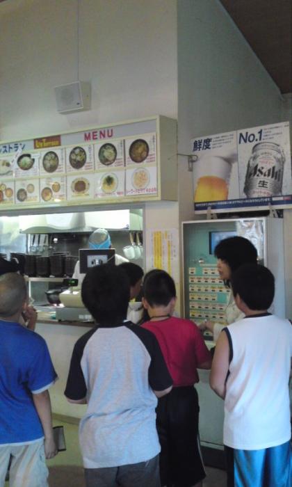 イルカアシカショーの後、レストランでこれから昼食です。