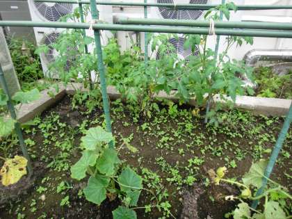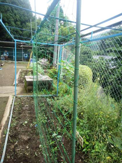 放課後に1年生と4年生の畑の整備をしました。「レイシ」の網をかけ、「ヘチマ」の網もかけました。