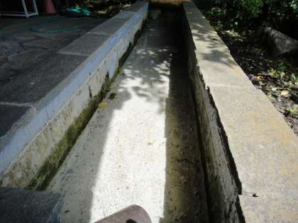 視聴覚室前の池の掃除を用務主事さんがしてくれていました。