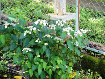 挿し木をして数年たって、やっと「あじさい」が咲いてきました。視聴覚室のまわりや玄関まわりに咲いていました。
