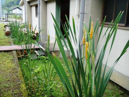 体育館の横の側溝に「ガマ」が増殖していました。全部で、8〜9個の穂が出ていました。