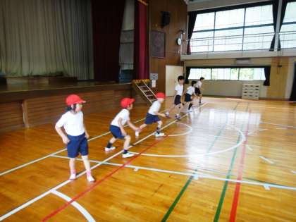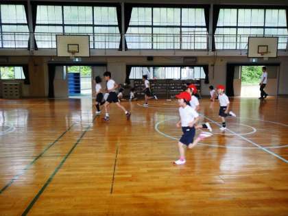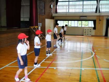 今年から、1〜6年生までが「体力測定」をすることになり、「ソフトボール投げ」と「シャトルラン」は全校で一斉にしました。1年生も6年生と一緒に「シャトルラン」をしました。