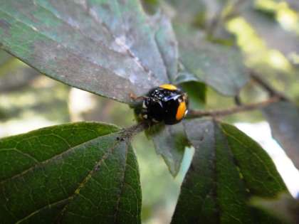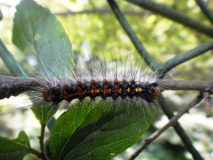 エノキに毛虫がついていました。きっと蛾の幼虫でしょうが、トゲがありそうでした。
