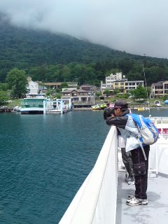 中禅寺湖の「遊覧船」に乗車し、終点に着きました。
