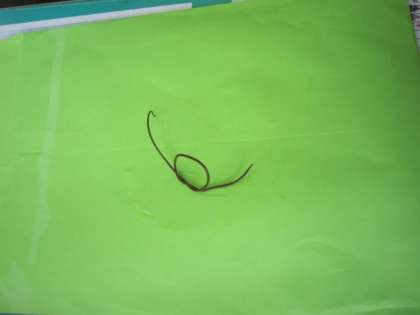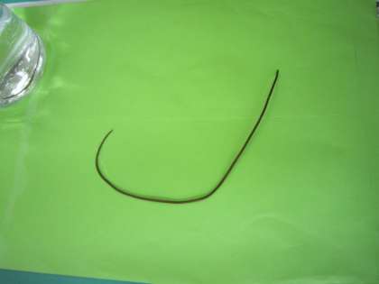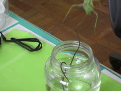 カマキリのおしりを水につけるとハリガネムシが出てきました。結んで遊んでみると自分でほどいています。