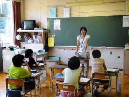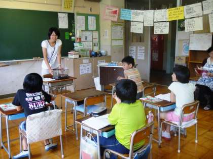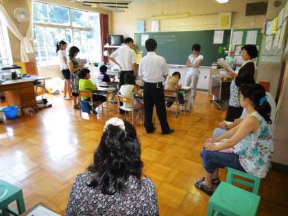 在籍5名のところ、1名が海外旅行に出かけたので、4名の児童で行ないました。参観した先生方は12名でした。