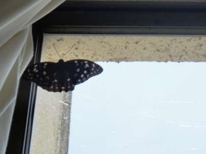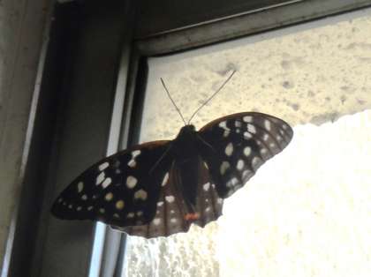 今日も、昼ころに3年教室に「オオムラサキ」が入ってきました。