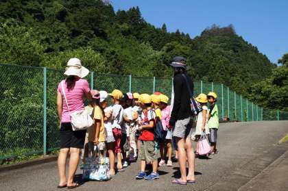 朝から気温が30度ぐらいの中、歩いて夕焼けの里まで行きました。