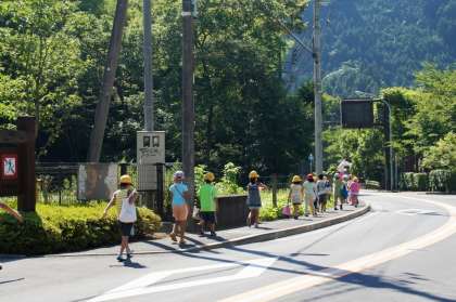 15日(金)の1〜2校時に1〜2年生が、夕焼けの里で「川遊び」をしました。