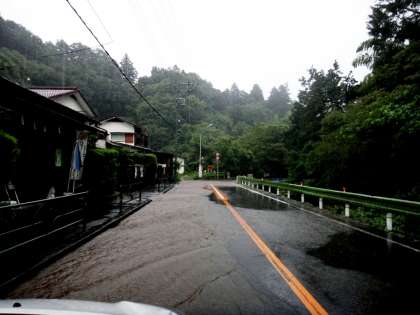 今日の5時過ぎに帰宅しましたが、陣馬街道の所々で増水し、道路まで水が出ていました。