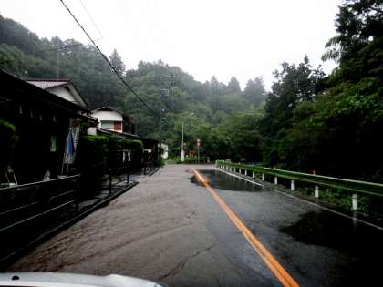 19日(火)の午後5時過ぎ、上恩方地方は豪雨になり、郵便局付近は道路が冠水していました。