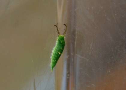 一学期最後の日。学級指導をしていました。アカボシゴマダラの幼虫が1センチメートルぐらいまで成長していました。