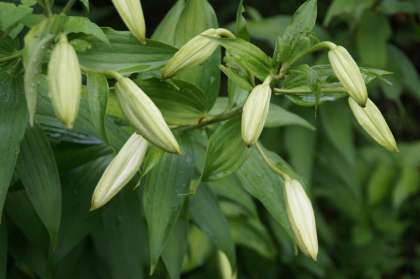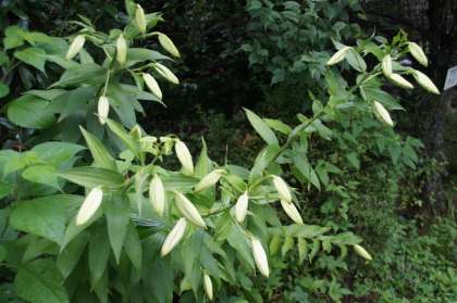 池の周りのカサブランカという百合は、4年生が入学したころに植えたものです。もう少しで花が咲きます。