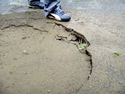 夕方、教育委員会の施設整備課の方達がいらして、被害の状況を見ていきました。そして、校庭の陥没については、明日にでも重機を投入して地面を掘ってみると言うことです。(直径1メートル、深さ数センチメートル陥没しました。)沢水の方は、専門の業者に対応していただくことになりました。