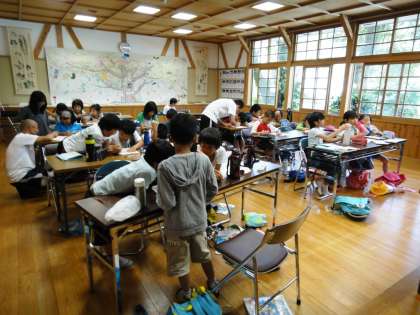 上級生が下級生の宿題を見てあげたりしていました。夏休みの全部の宿題が終わった子もいたようで、急遽指導していた先生方が「プリント」を準備してくれました。