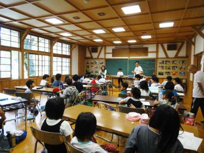 子ども達はお弁当を持ち、サマースクールの準備もしていたので、午後1時過ぎまで視聴覚室でサマースクールをしました。途中で何回か休み時間にして、校庭で遊ぶ時間も設定しましたが、子ども達は4時間も大変頑張りました。
