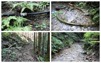 台風の影響で沢水が止まりましたが、今日、午後から沢水の取水口まで行ってみました。