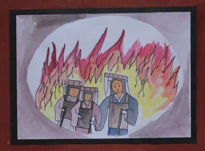 冷たい北風の中、東へ東へとのがれて行き、大月を過ぎたあと、二人のお兄さまも戦いで亡(な)くなられたという知らせがありました。