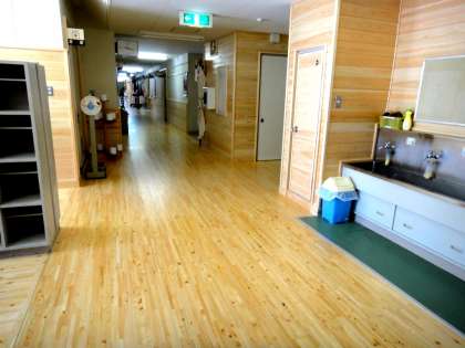 校舎の床や廊下の壁、階段をこの夏休みに「木造」にしたそうです。とてもきれいな学校でした。