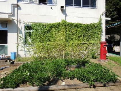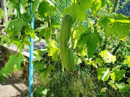 ヘチマが大きくなってきました。ゴーヤは50個ぐらい収穫しました。