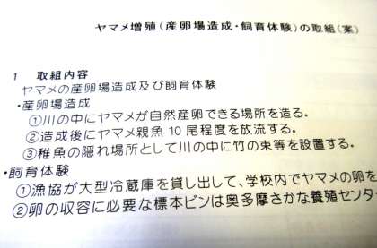 10月になり、ヤマメの産卵場造成・飼育体験をします。前回よりも時期が早いので水温や気温は高いので子ども達にとっては良いのですが、ヤマメの受精卵が手に入らない時期ということで、産卵場作りと卵の飼育体験は時期をずらして実施することにしました。