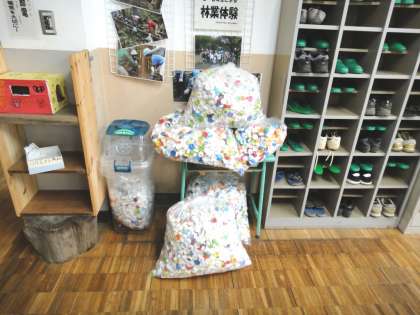 数年前から恩方第二小学校の「児童会」でペットボトルのキャップを収集していますが、たくさん集まりました。