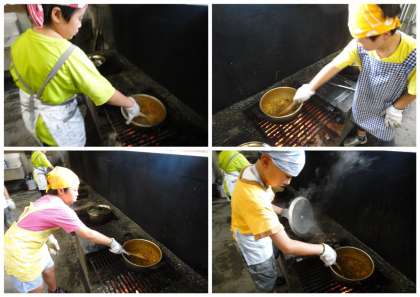 晴天の中、夕焼けの里で飯ごうすいさんをしました。1〜4年生が参加しました。