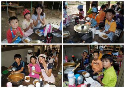 晴天の中、夕焼けの里で飯ごうすいさんをしました。1〜4年生が参加しました。