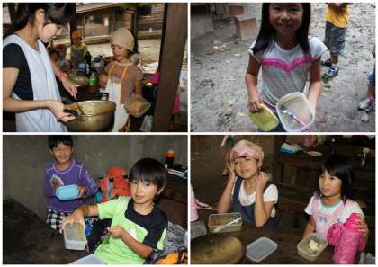 晴天の中、夕焼けの里で飯ごうすいさんをしました。1〜4年生が参加しました。