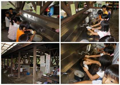 晴天の中、夕焼けの里で飯ごうすいさんをしました。1〜4年生が参加しました。