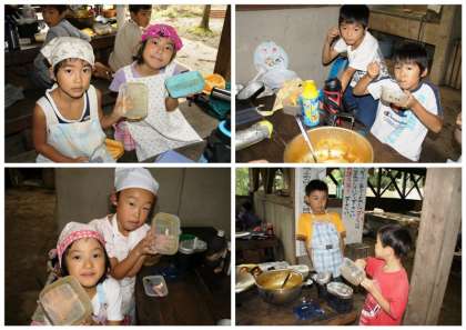 晴天の中、夕焼けの里で飯ごうすいさんをしました。1〜4年生が参加しました。