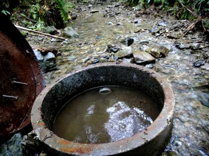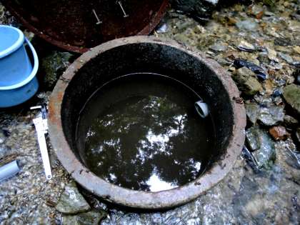 取水口の「マス」の掃除をして砂や泥を流しました。
