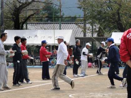 プログラム7番は「太公望」。商品はレトルトカレーでした。これには来賓や各校長先生達も参加しました。