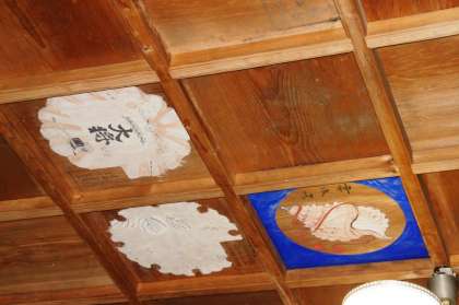 天井の板にも様々な模様がしてありました。いわゆるスポンサー名です。