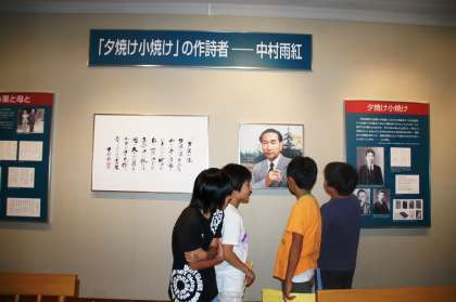 宮尾神社の見学の後、4年生が「夕焼けの里」に行き、中村雨紅展を見学しました。
