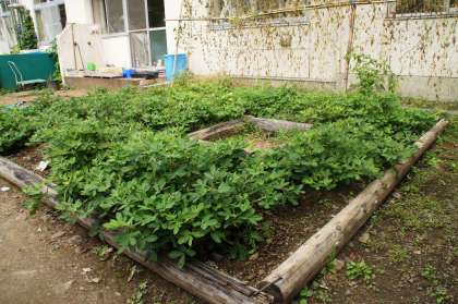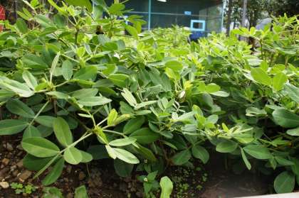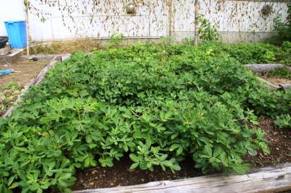 1年教室前の落花生が元気です。11月になったら落花生を収穫したいと思っています。