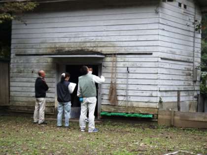 校庭の「体育倉庫」の修理について見ていきました。