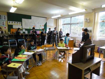 この検証授業には、5人の4年生と10名ぐらいの市内の先生方が参加しました。