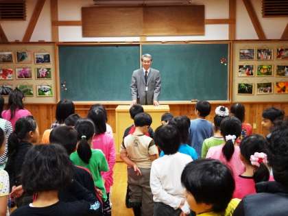 24日(月)の児童朝会は、教育実習生の終わりの挨拶がありました。