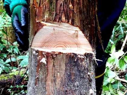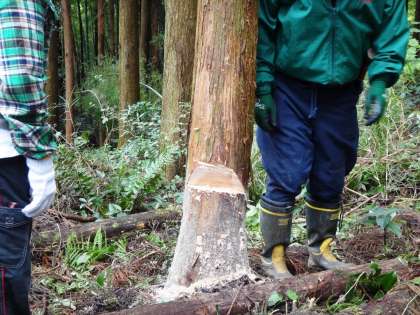 交代しながらノコギリで木を切りました。一人で3回ぐらい切りました。