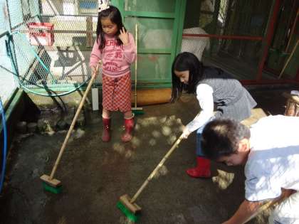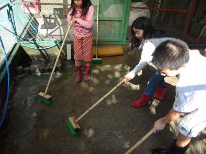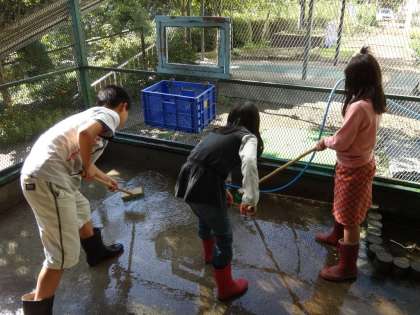 飼育・栽培委員会の子ども達は晴天の中、ウサギとヤギの世話をしました。とてもよく働いてくれました。