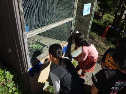 飼育・栽培委員会の子ども達は晴天の中、ウサギとヤギの世話をしました。とてもよく働いてくれました。