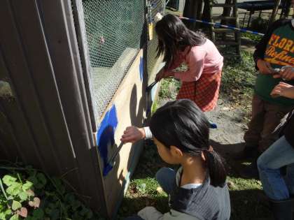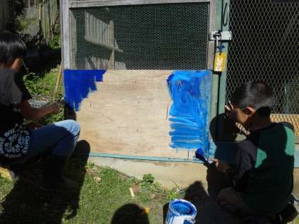仕事が早く終わったので、後半の7分ぐらいで、ウサギ小屋のペンキ塗りをしました。